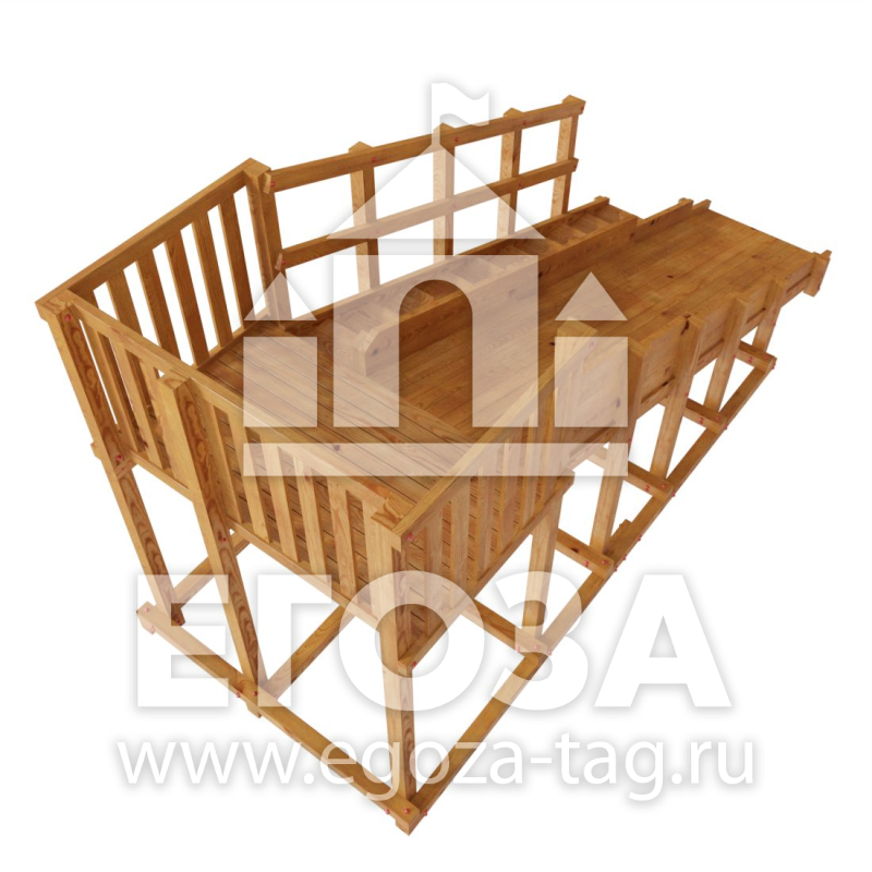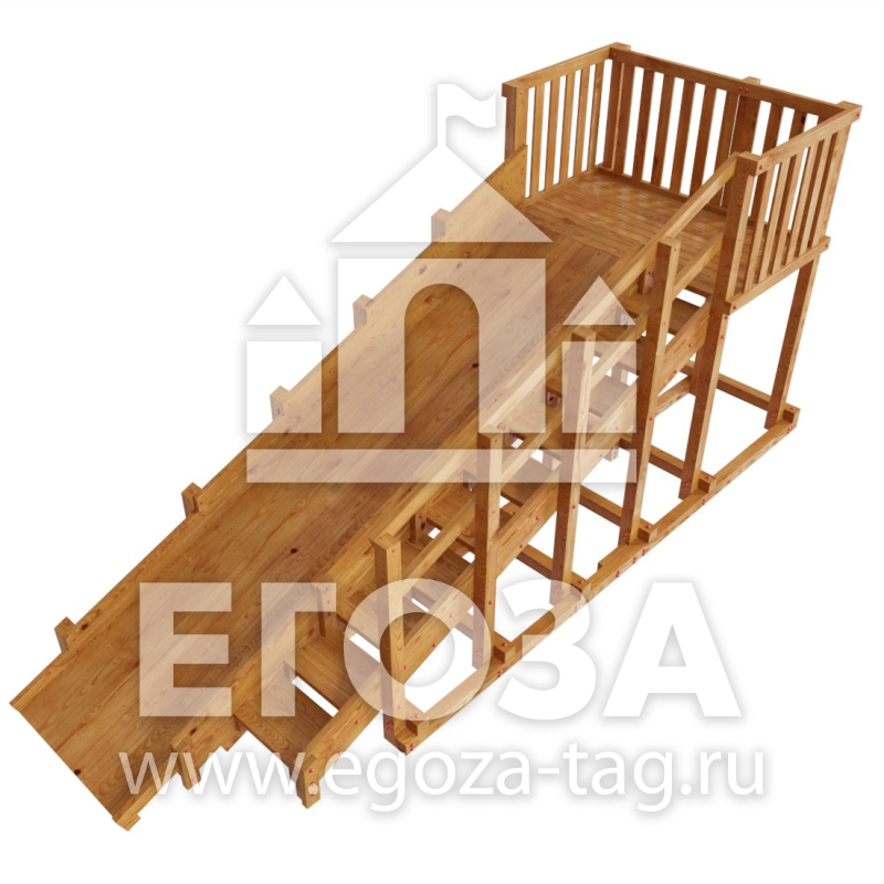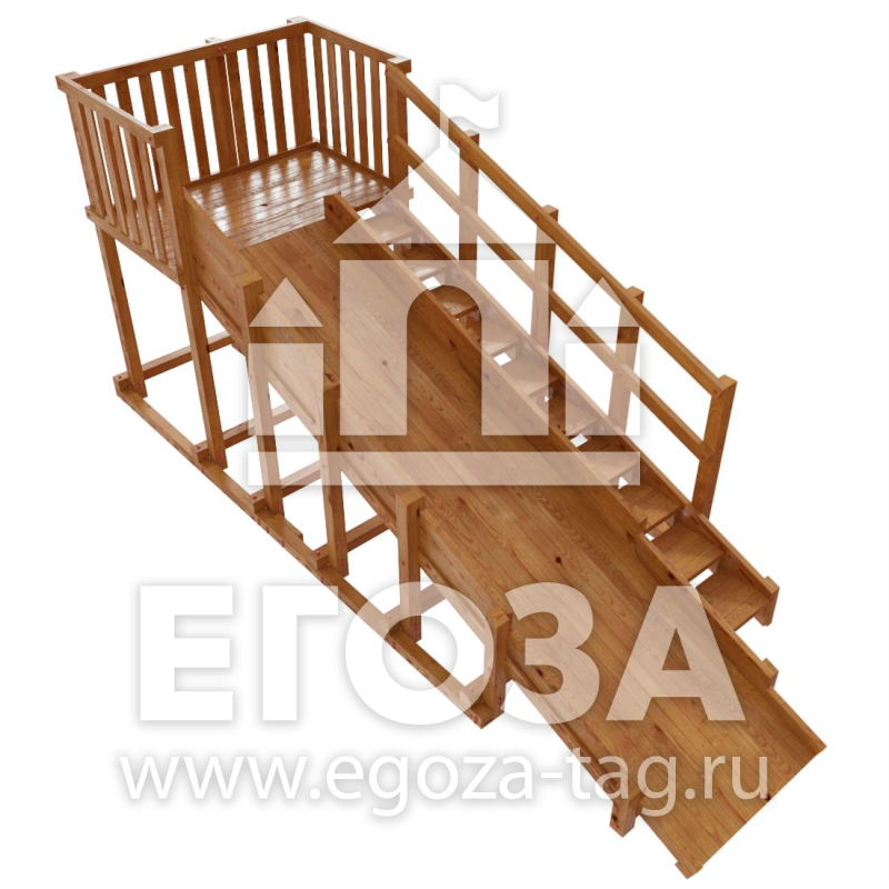 Материалы: Карельская сосна, лак на водной основе. Каркас горки изготовлен из многослойного клееного соснового бруса 85 мм, пол, ограждения из массива сосны 18 мм