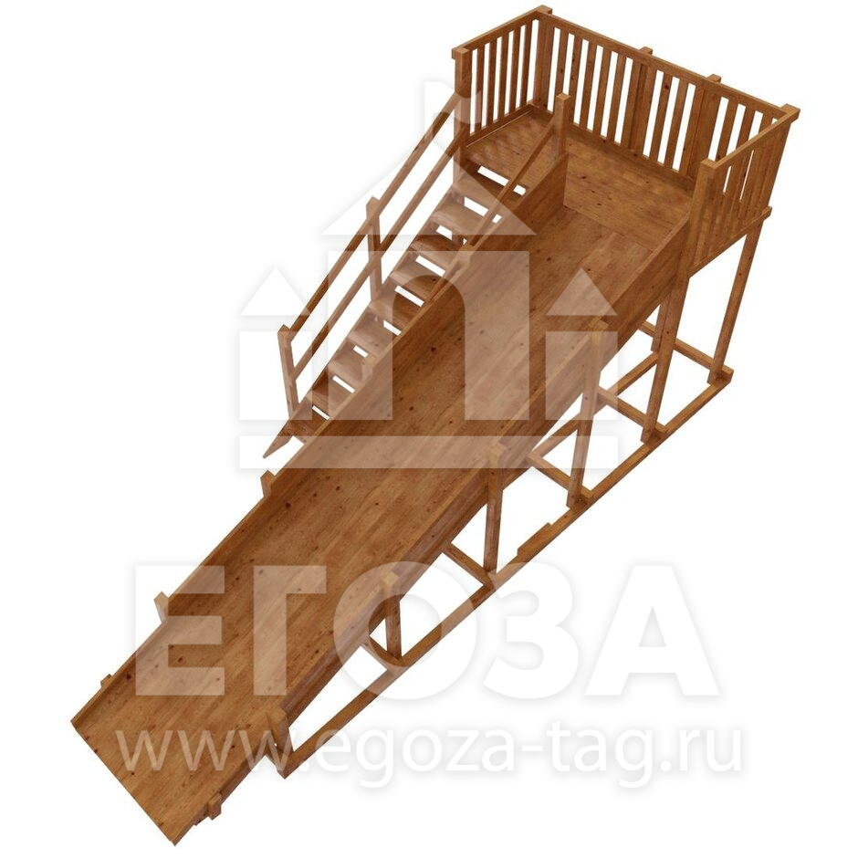 Материалы: Материалы: Карельская сосна, покрытие масло. Каркас горки изготовлен из многослойного клееного соснового бруса 85 мм, пол, ограждения из массива сосны 18 мм