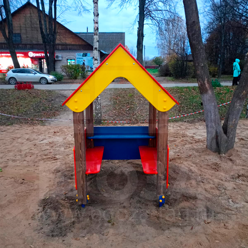 Материалы: Клееный брус 100х100; Труба круглая (Ø 27 мм); Влагостойкая фанера (15/18 мм)