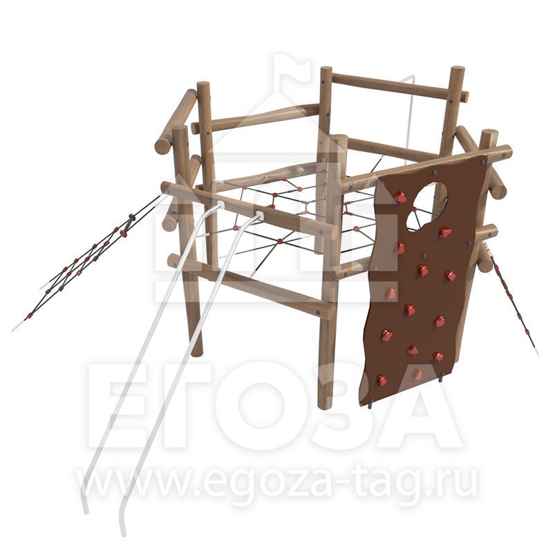 Материалы: Дерево хвойных пород; Армированный канат 16 мм; Фанера 18 мм; Нержавеющая труба 42 мм