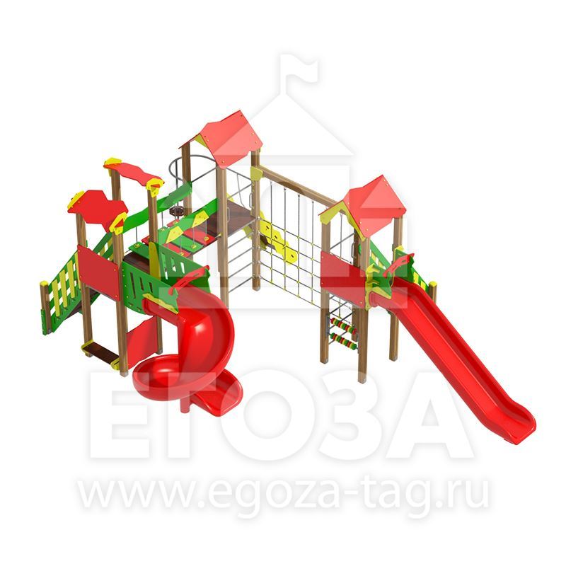 Материалы: Клееный брус 100х100 мм; Труба профильная 60х40; 40х40; 40х20 мм; Труба круглая 33,5; 26,8; 21,3 мм; Фанера ФСФ 15; 18; 24 мм;  Ламинированная фанера 18;24 мм; Пластиковая прямая горка; Пластиковая винтовая горка.