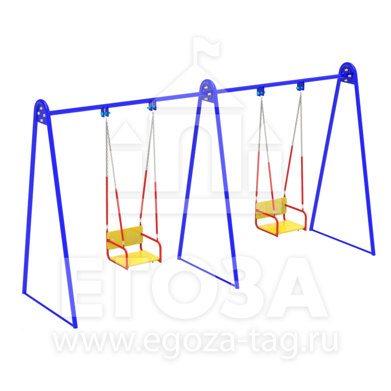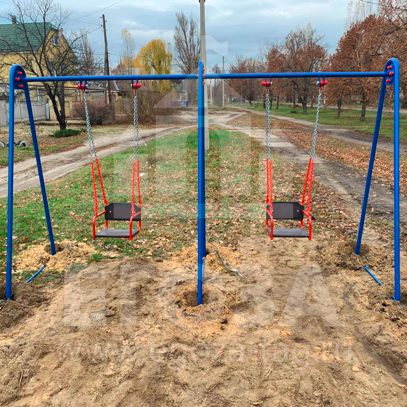 Комплектация: Опоры на фланцах, горизонтали качелей, две качели цепные в сборе.
