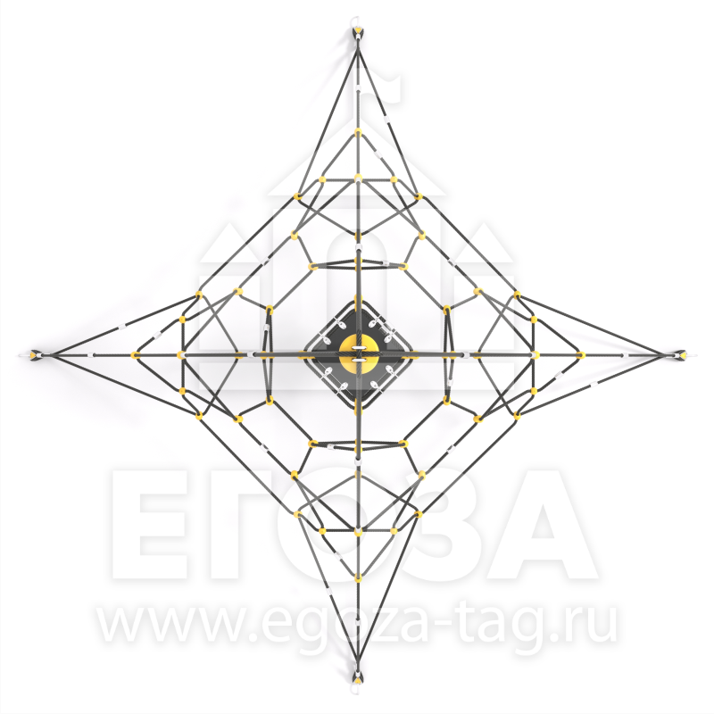 Материалы: Круглая труба 108 мм, армированный канат 16 мм, алюминиевые гильзы для фиксации каната.