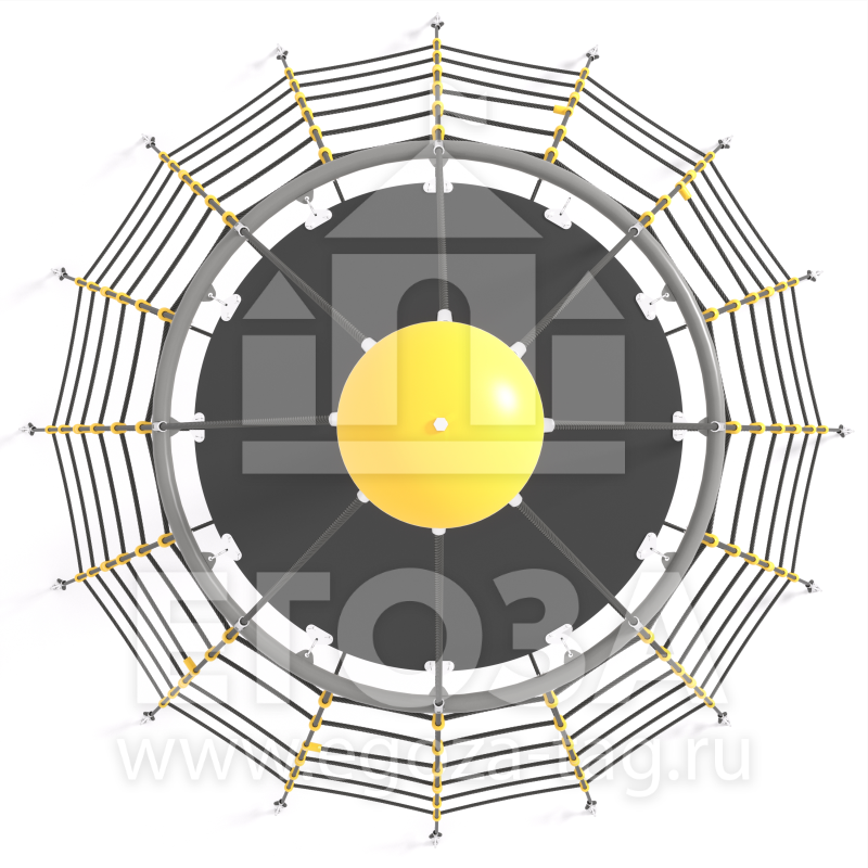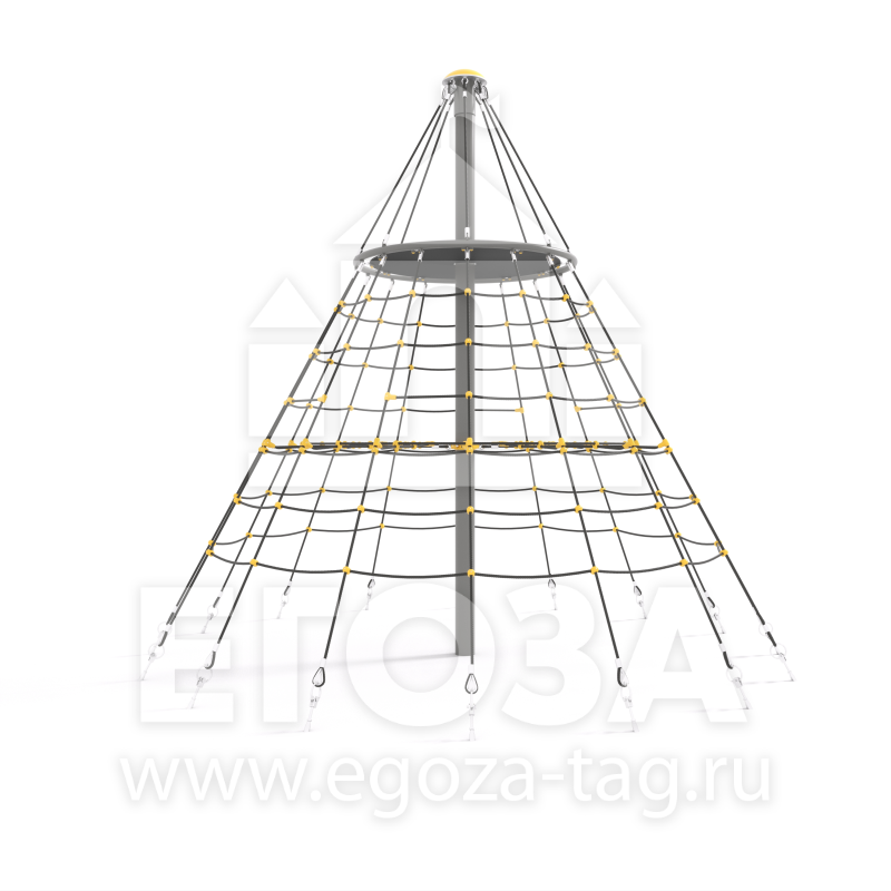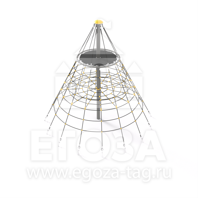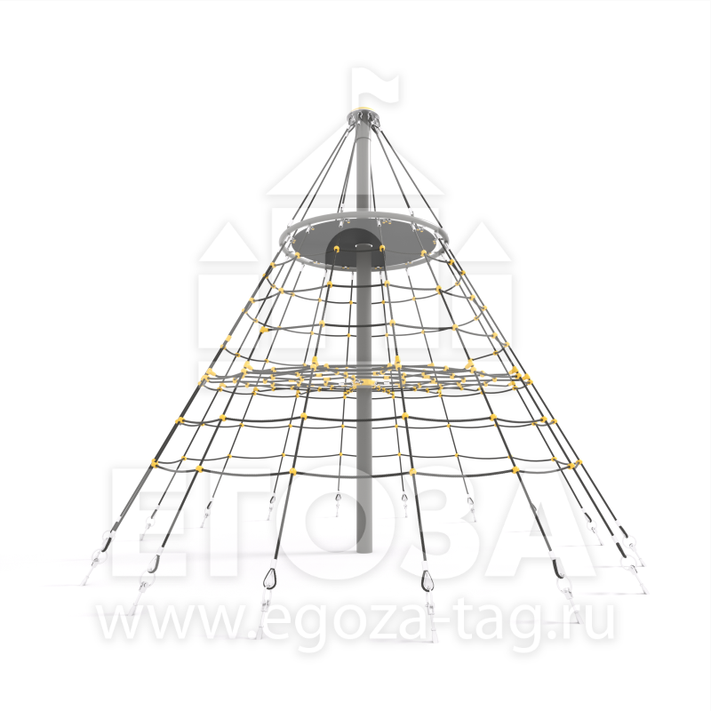Материалы: Круглая труба 108 мм, армированный канат 16 мм, алюминиевые гильзы для фиксации каната.